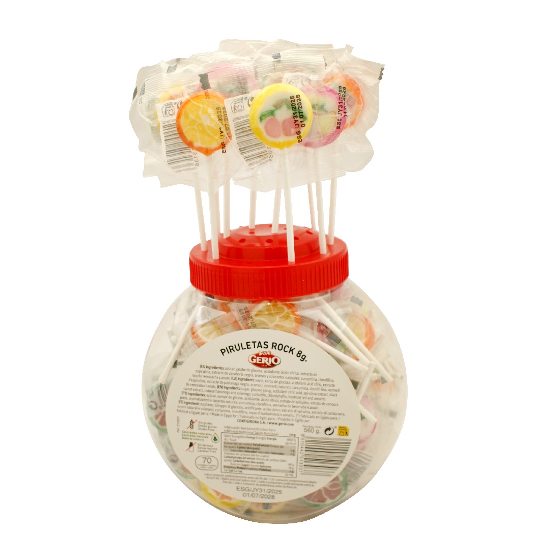 Sucre, xarop de glucosa, acidificant àcid cítric, aromes i colorants naturals (E-100, E-141, E-160a i E-163).